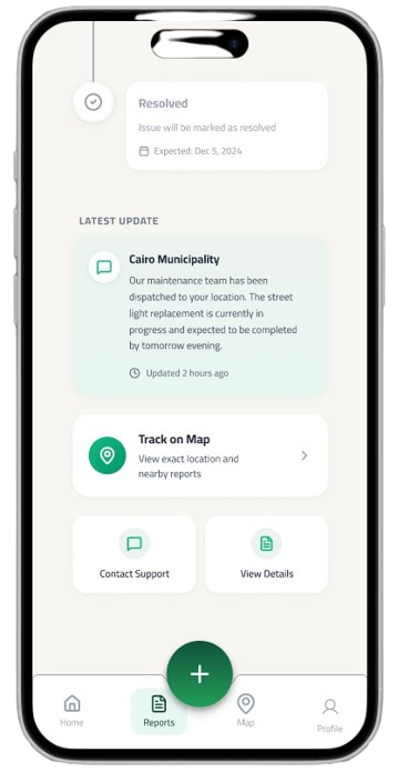 Track your report status from submission to resolution with detailed updates
